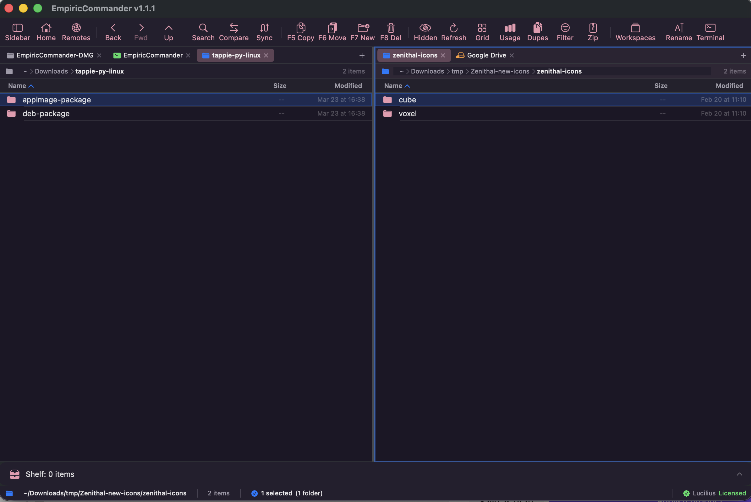 Dual-pane browsing, remote connections to SFTP, S3, and Azure, cloud storage sync, and an integrated terminal, all in one native app for macOS, iPad, and iPhone.